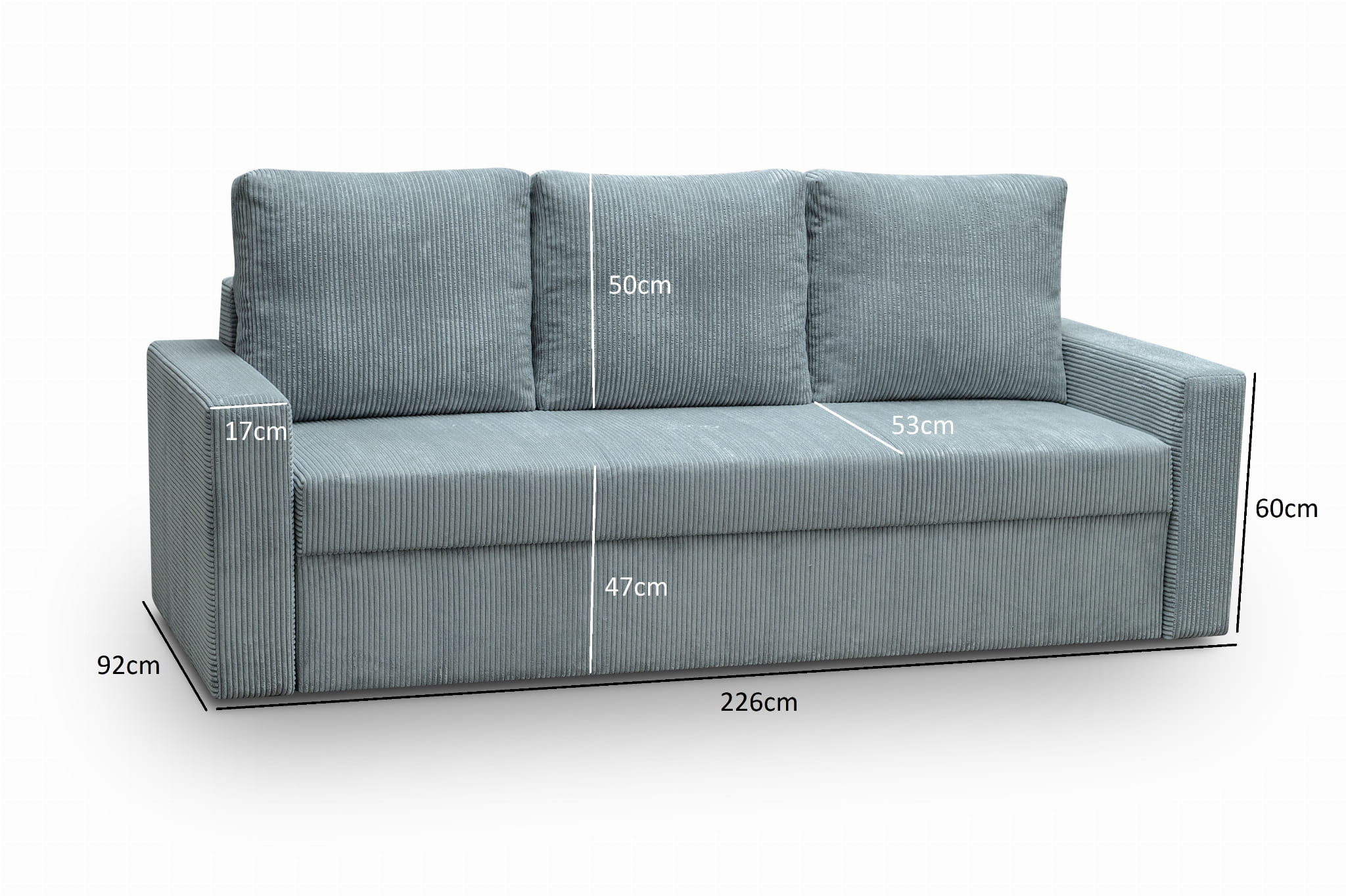 - Głębokość siedzenia: 53 cm