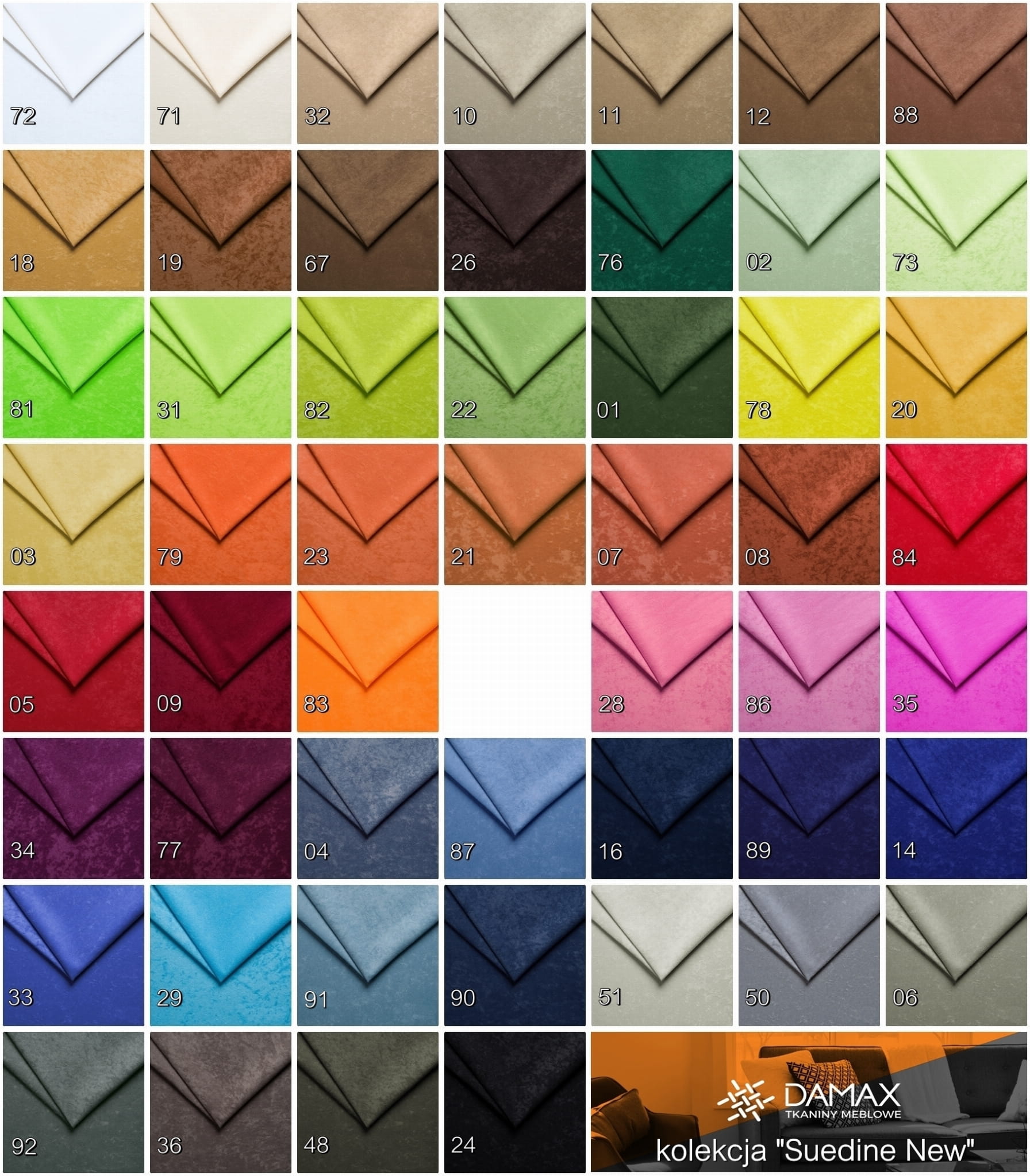 Tkanina dekoracyjno-obiciowa Suedine. Tkanina typu mikrofibra z pluszową fakturą, miękka i miła w dotyku. Tkanina o uniwersalnym zastosowaniu – nadaje się zarówno na obicia mebli, jak i na lekkie zasłony, poduszki dekoracyjne.