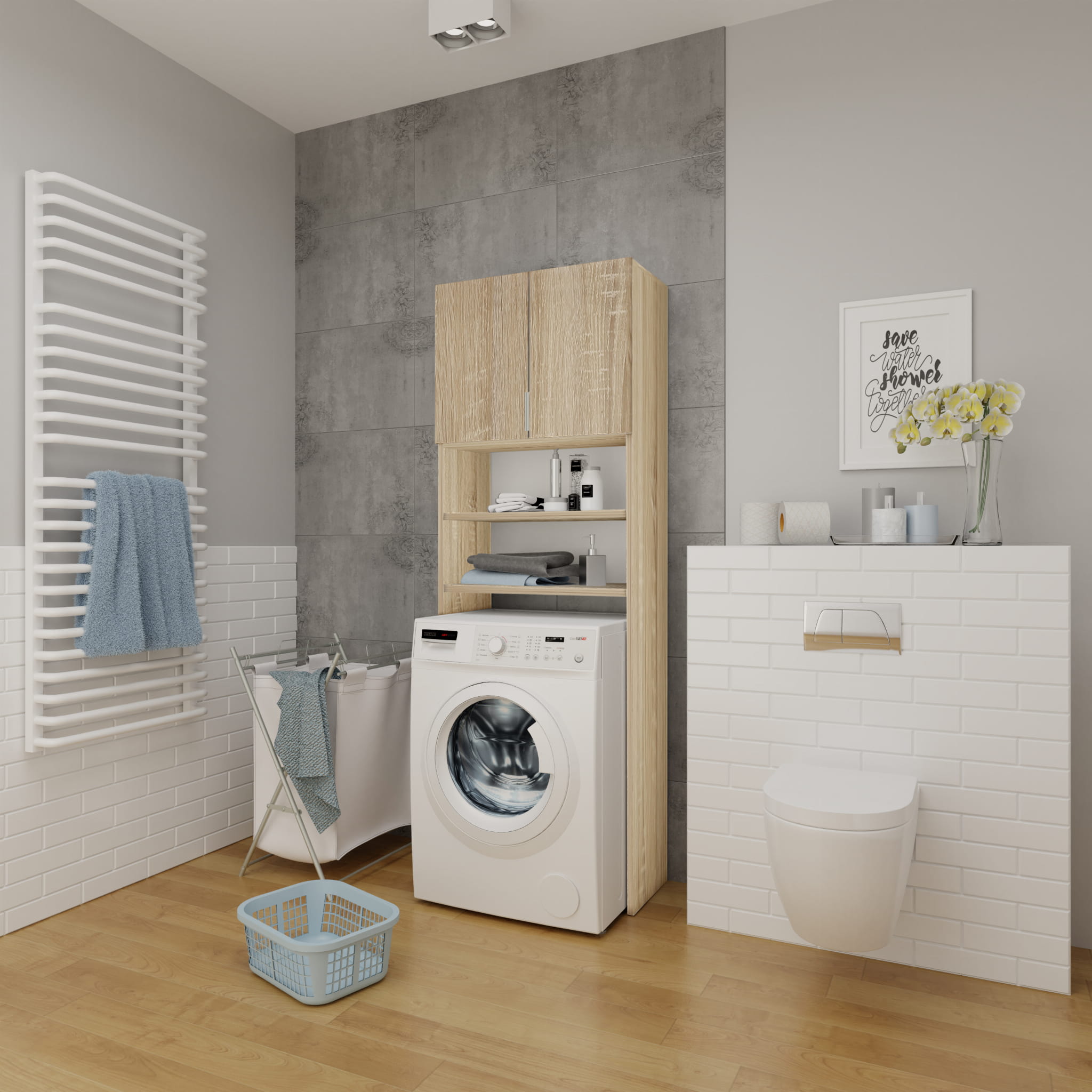 Szafka Nad Pralkę Stojąca 64x183 Dąb Sonoma
