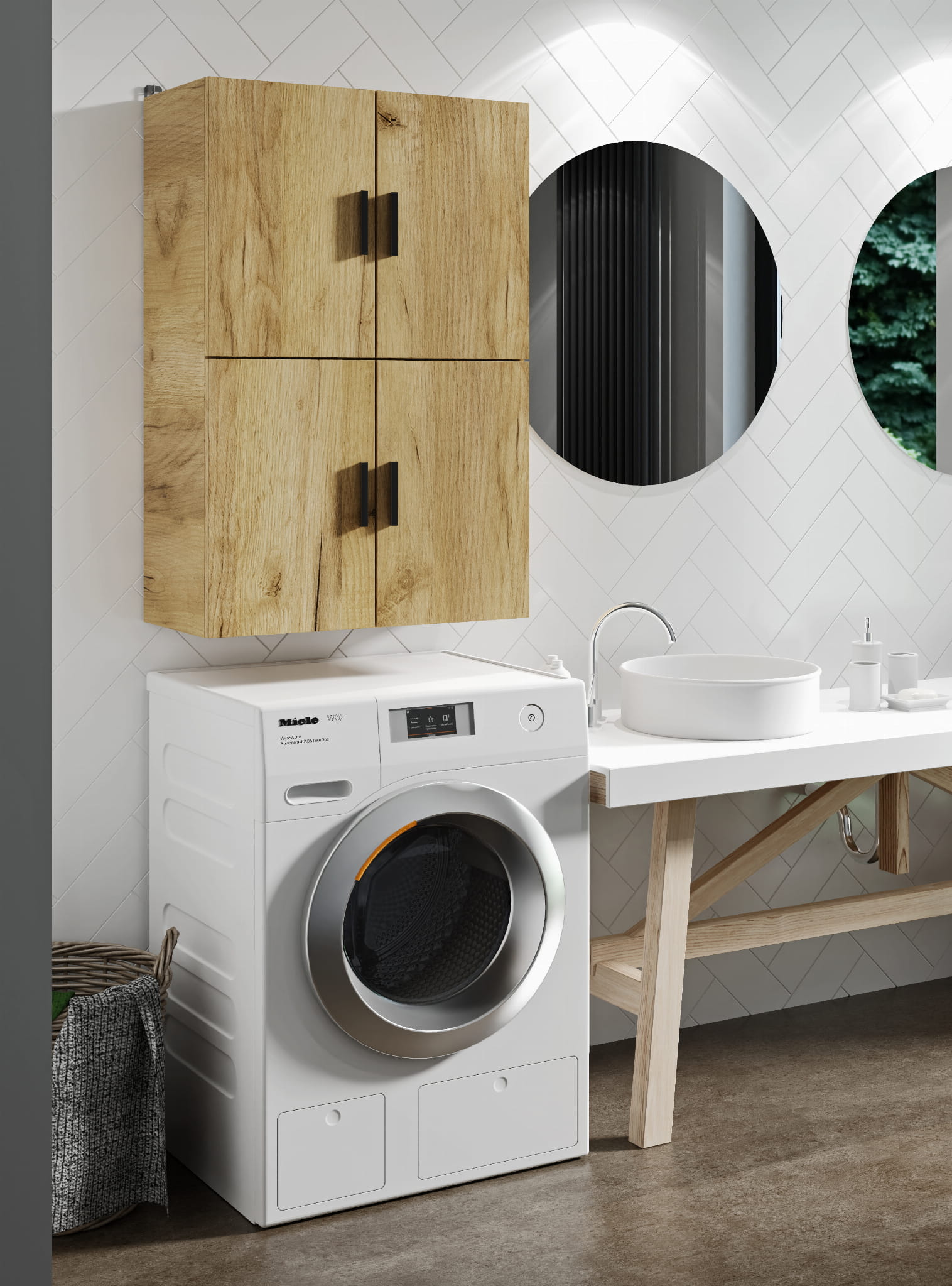 Szafka Nad Pralkę Wisząca 60x93 cm Dąb Craft Złoty