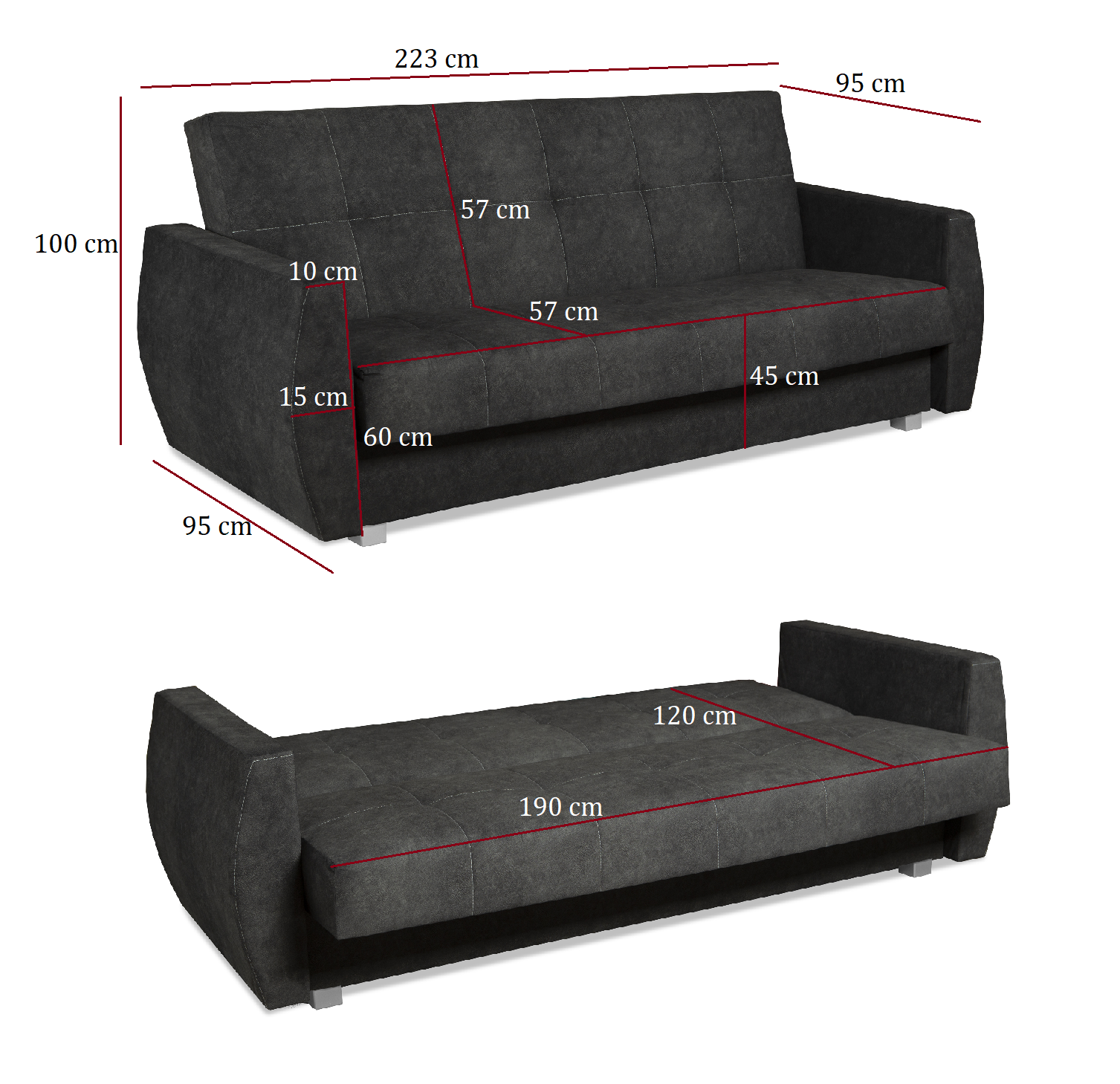 - Głębokość siedzenia: 57cm