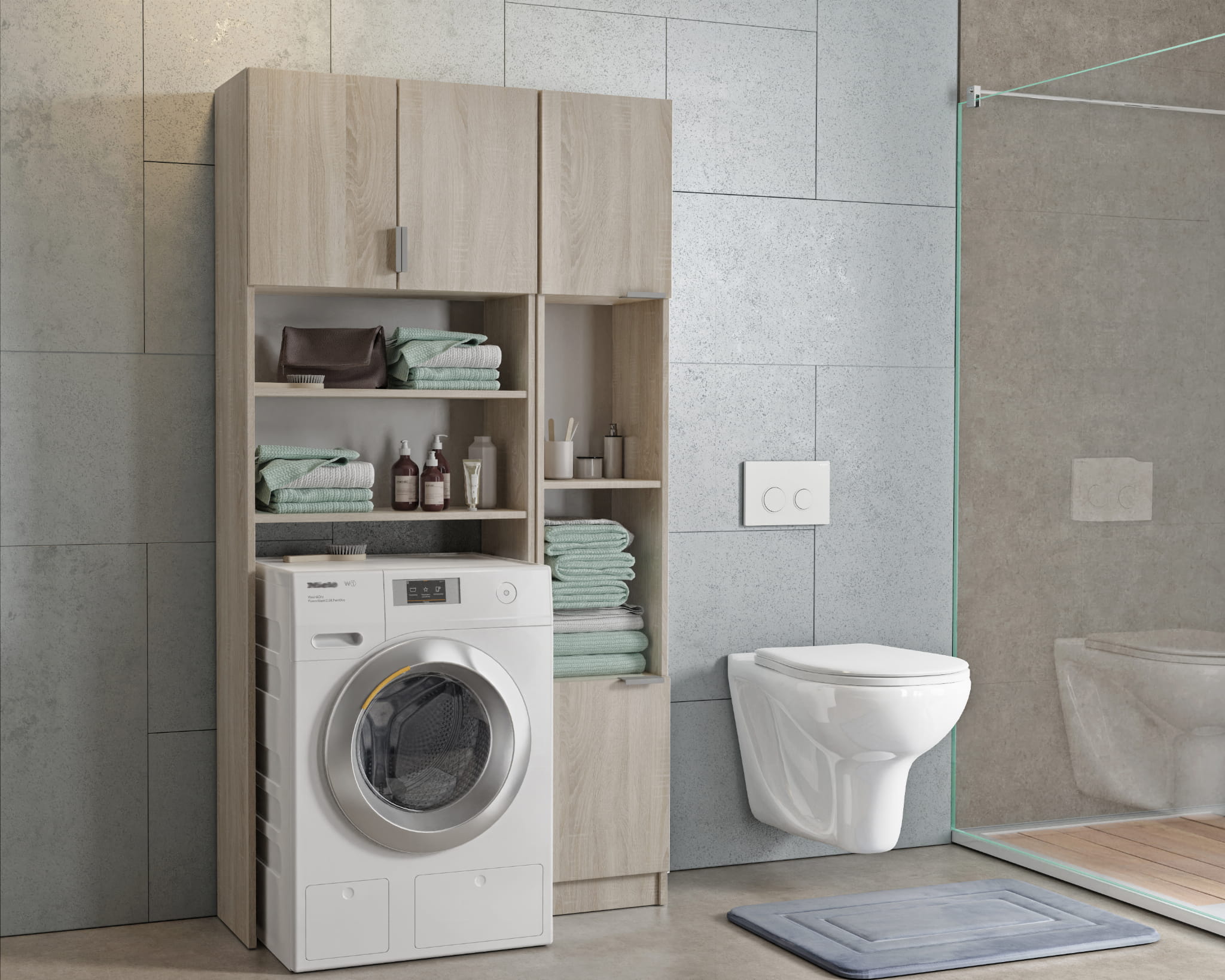 Zestaw Szafka Nad Pralkę + Słupek Łazienkowy Dąb Sonoma