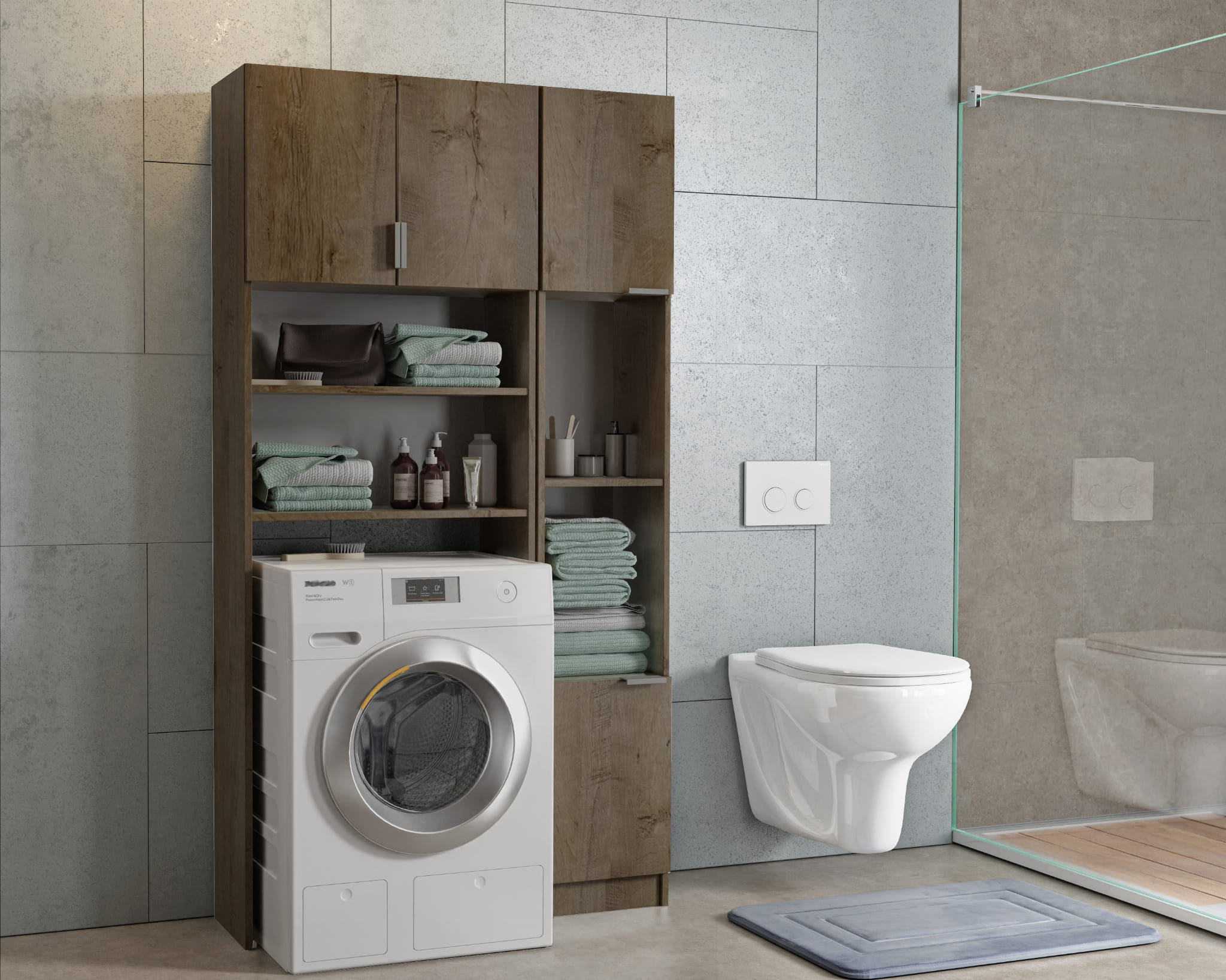Zestaw Szafka Nad Pralkę + Słupek Łazienkowy Jesion Ciemny