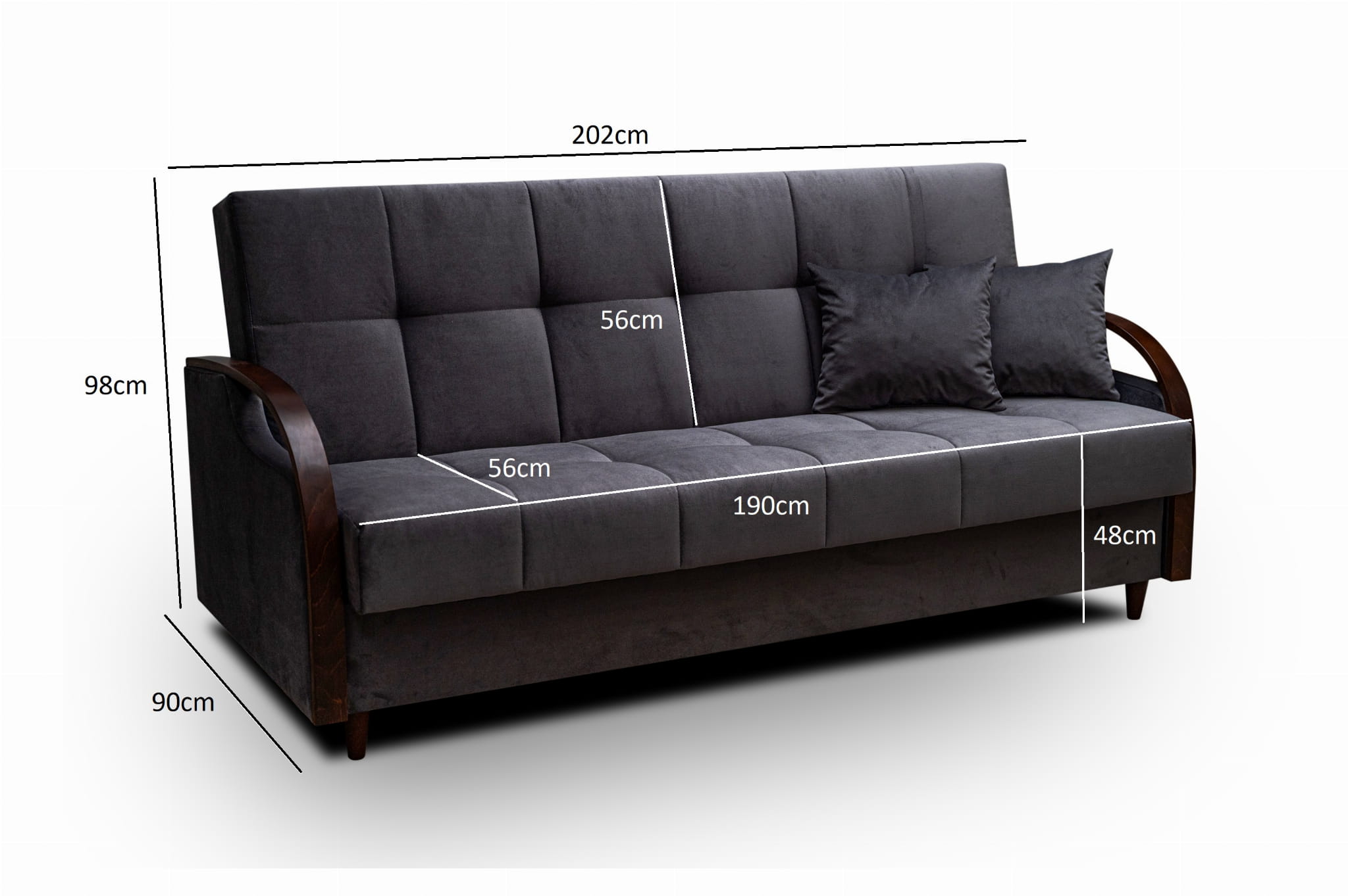 - Głębokość siedzenia: 57cm